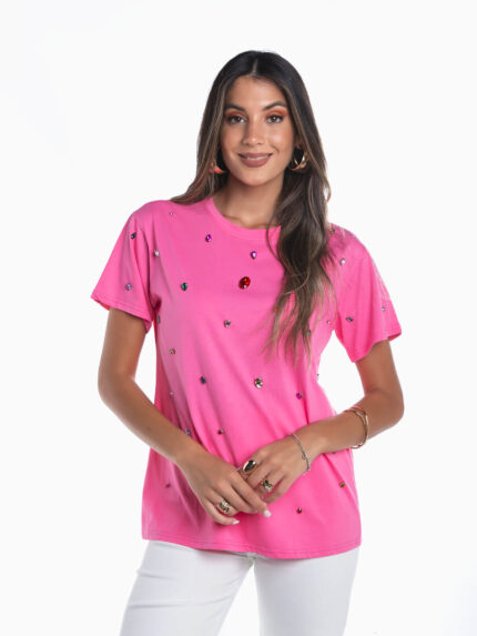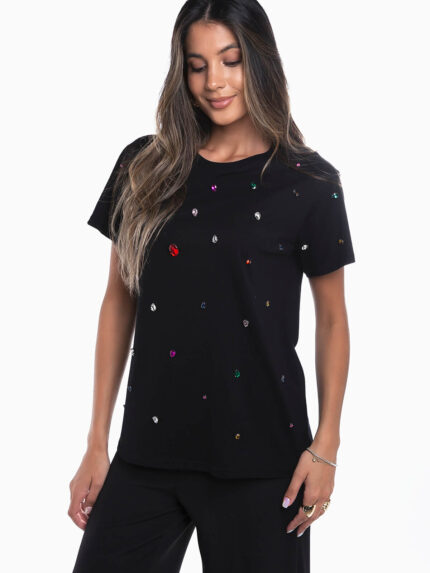 T-shirt manga curta com aplicações