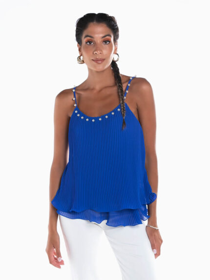 Top alças plissado com pérolas