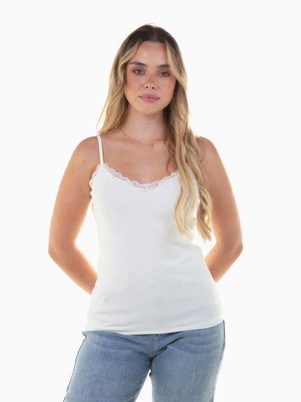 Top alças malha com renda