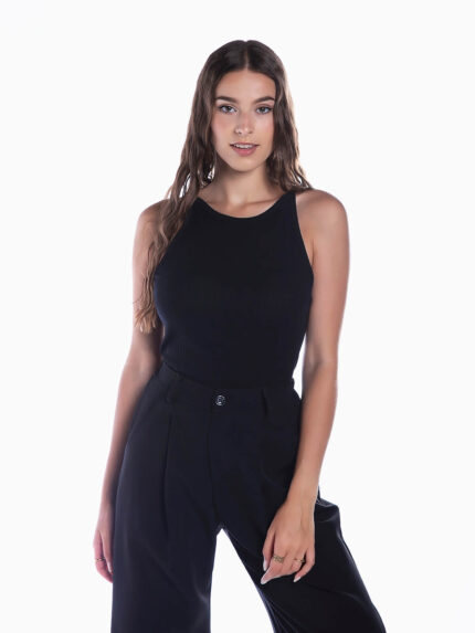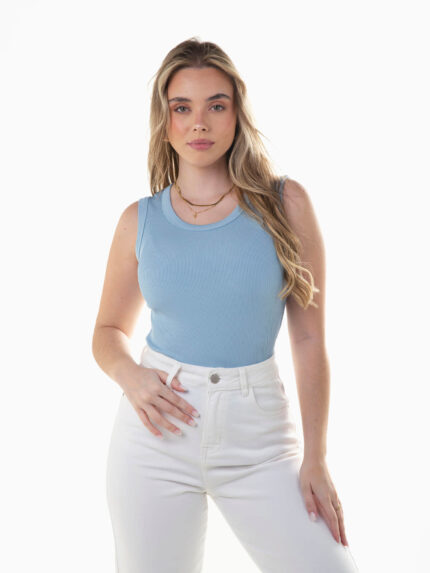 Top canelado sem mangas