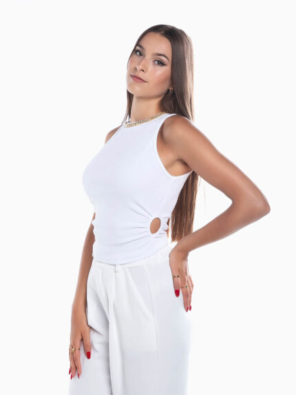 Top canelado decote recortado