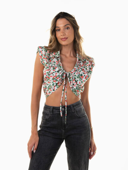 Top com cerejas e bolso