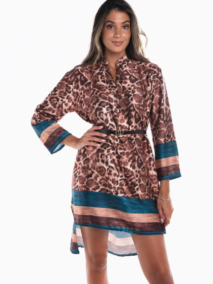 Vestido curto acetinado animal print