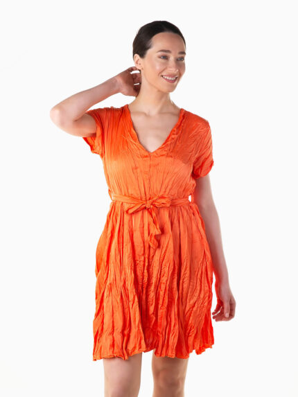 Vestido curto acetinado cinto