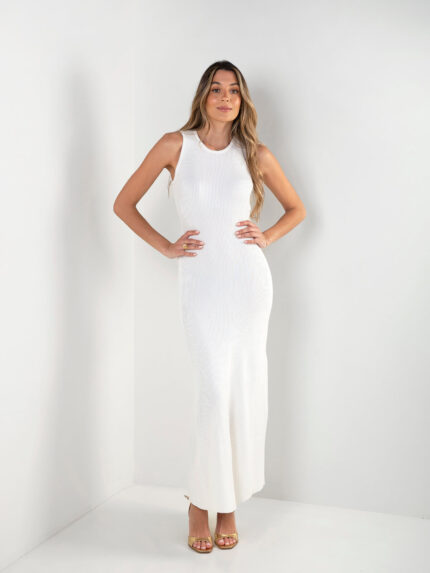 Vestido malha comprido decote halter