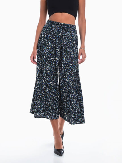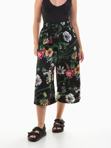 Calças culotte plissadas com flores