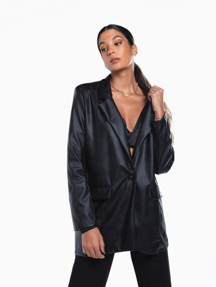 Blazer comprido pele sintética