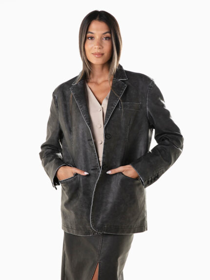 Blazer comprido efeito pele desgastada