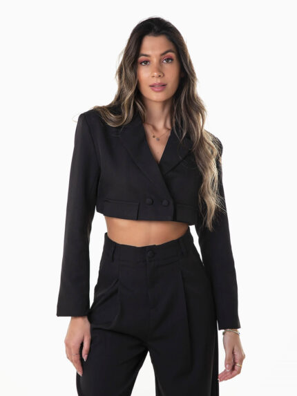 Blazer cropped com botões