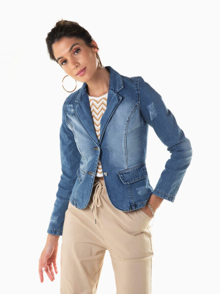 Blazer em ganga com bolsos