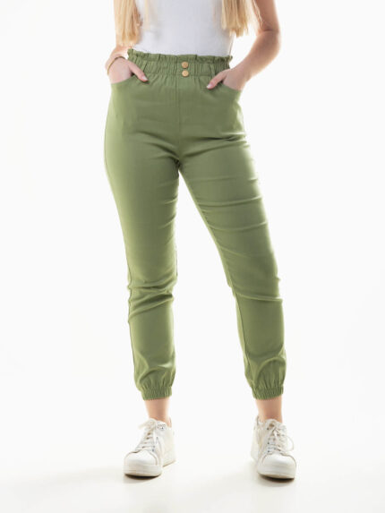 Calças elásticas cintura paperbag