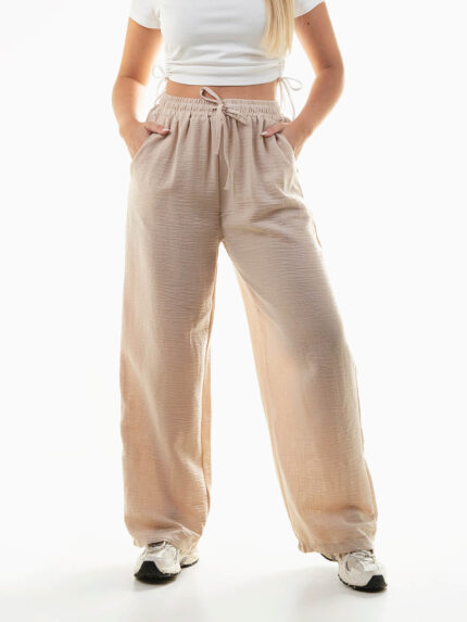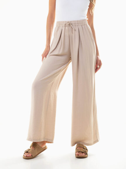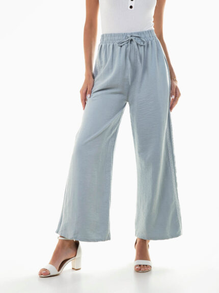 Calças fluídas com cintura texturizada