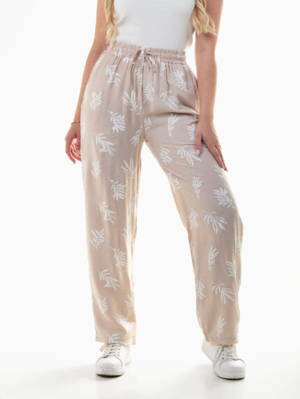 Calças fluídas com folhas