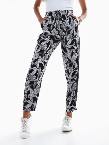 Calças fluídas estampado folhas