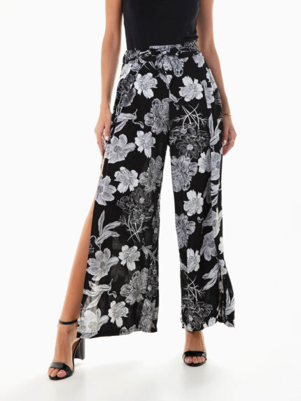 Calças fluídas estampadas com aberturas