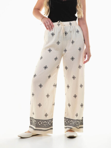 Calças fluídas estampado étnico