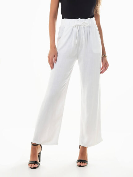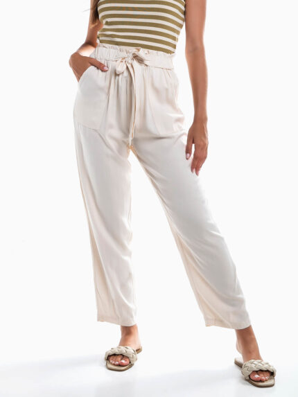 Calças fluídas paperbag com bolsos