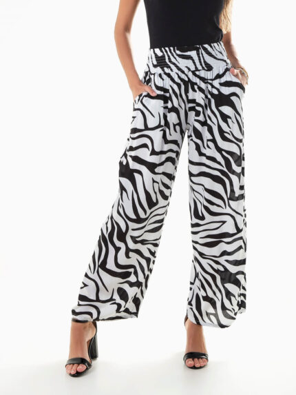 Calças fluídas estampado zebra